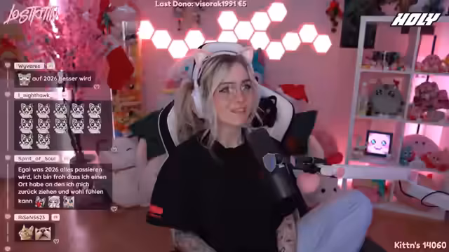 07:39:24Zwischen den Spielabschnitten werden persönliche Anekdoten geteilt. So werden die Erlebnisse der Streamerin mit ihren Katzen an Silvester geschildert, die sich zunächst unter dem Bett verkrochen haben. Auch andere Zuschauer teilen ihre Erlebnisse mit Tieren. Die Streamerin reflektiert den enormen Zeitaufwand des Streamings, der anstrengender ist als erwartet, aber schnell vergeht, und bedankt sich bei der Community für den Support.