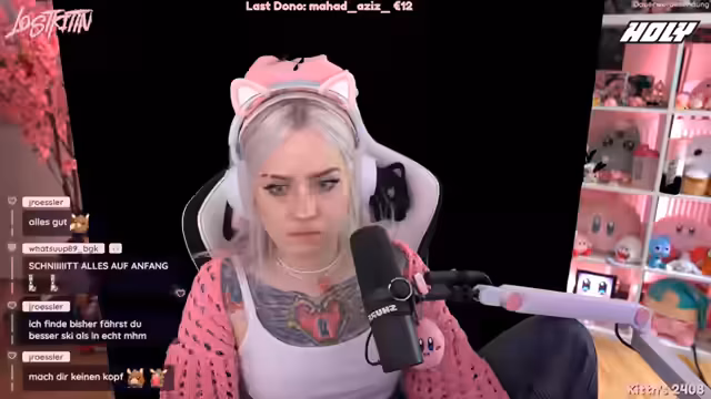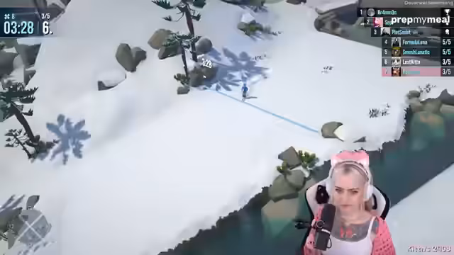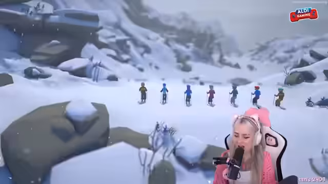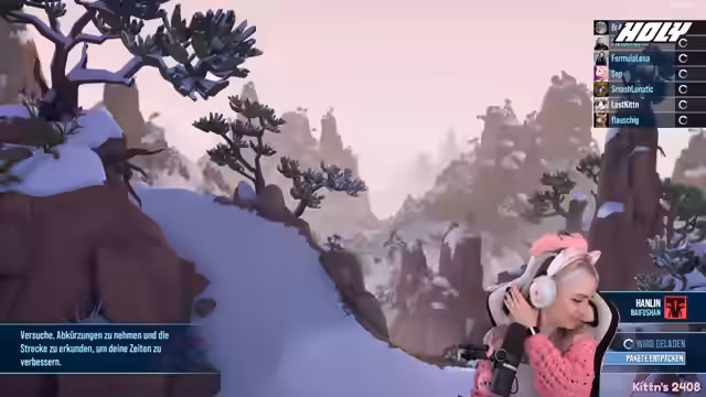 01:59:17Die Streamer begrüßen die Zuschauer erneut zu Lonely Mountain Snow Riders, diesmal mit einer großen Lobby und Unterstützung von Smash Lunatic, Lost Kitten, Flauschig und Formula Lena. Die Laps sind zufällig, und das Ziel ist es, eine Piste so schnell wie möglich hinunterzufahren. Es gibt Checkpoints und verschiedene Wege, und die Zeiten über vier Strecken werden addiert, um den Gewinner des Cups zu ermitteln. Die Spieler kämpfen mit der Steuerung und versuchen, Abkürzungen zu finden, wobei es zu Stürzen und Schwierigkeiten kommt. Es wird festgestellt, dass es schwierig ist, die richtige Richtung zu finden, und die Spieler helfen sich gegenseitig, indem sie Spuren hinterlassen. Einige Spieler nehmen riskante Abkürzungen, während andere vorsichtiger vorgehen. Es kommt zu humorvollen Kommentaren und gegenseitigem Anfeuern, während die Spieler versuchen, die Strecke zu meistern.