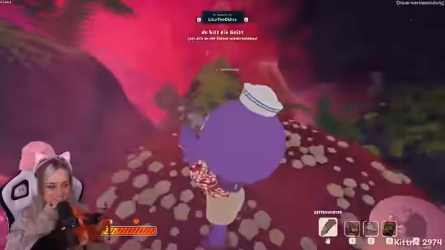 01:40:41Lilly probiert einen roten Blitzpilz, was bei der Streamerin Bedenken hervorruft. Es wird erklärt, dass die Pilze verschiedene Effekte haben. Die Streamerin warnt davor, wie Lilly zu enden, da sie einen 'geilen Trip' erlebt. Es kommt zu Vergiftungen und der Suche nach Zecken. Die Gruppe entdeckt Spinnen und Marienkäfer und äußert ihre Abneigung gegen Spinnen. Es wird eine 'Lasch-Fadebombe' erwähnt, die den Weg versperrt. Die Streamerin versucht, einen Weg nach oben zu finden, während sie mit dem Wind und Stürzen kämpft. Sie erklärt den Unterschied zwischen Rutschen und Fallen. Die Gruppe versucht, sich gegenseitig zu helfen, um die Hindernisse zu überwinden, während sie sich über die Schwierigkeit des Aufstiegs und die Teamdynamik austauschen. Es kommt zu weiteren Halluzinationen durch Pilze, und die Streamerin sieht Dinge und leuchtet. Die Gruppe entdeckt einen goldenen Käfer, dessen Geräusch ekelhaft ist, und eine Alraune. Es kommt zu humorvollen Interaktionen mit Pilzen und weiteren Stürzen. Die Streamerin äußert ihren Hunger und die Notwendigkeit, sich zu heilen. Es kommt zu weiteren Diskussionen über gestohlene Früchte und die Schuldzuweisungen innerhalb der Gruppe. Die Streamerin versucht, einen Weg nach oben zu finden, während sie mit dem Wind und ihrer Ausdauer kämpft. Sie entdeckt einen Pilz, der sie hochschleudern könnte, und springt in die falsche Richtung. Es kommt zu weiteren Begegnungen mit Spinnen und Käfern, die als 'süß' bezeichnet werden. Die Streamerin kämpft weiterhin mit den Herausforderungen des Spiels, während sie sich über die Bugs und die Schwierigkeit des Aufstiegs austauscht.