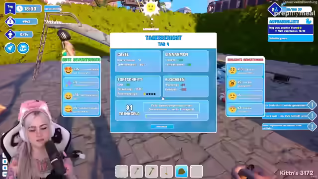 LostKittn erlebt im Wasserpark-Simulator ein turbulentes Auf und Ab. Von Hotdog-Engpässen und Pool-Unfällen bis hin zu einer Möwenplage gibt es zahlreiche Herausforderungen. Personalmangel und technische Schwierigkeiten verschärfen die Situation zusätzlich. Trotz allem versucht sie, den Park zu verbessern und die Gäste zufriedenzustellen, während sie gleichzeitig mit Zechenprellern und anderen Problemen kämpft.