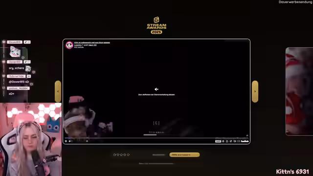 01:38:12Die Streamerin und ihr Chat durchgehen und bewerten Clips, die für die Stream Awards eingesendet wurden. Sie analysiert verschiedene Kategorien wie 'Bester Jumpscare', 'Bester Rage-Moment' und 'Beste Zuschauer-Interaktion'. Dabei werden humoristische und teils unangenehme Clips besprochen, und die Streamerin äußert ihre Vorlieben für bestimmte Einsendungen, wie einen Clip mit perfektem Timing beim Niesen.