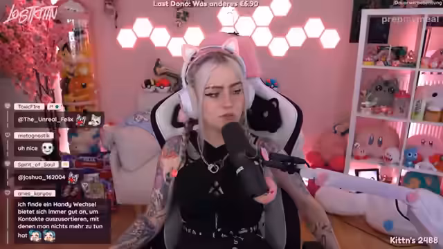 lostkittn kämpfte mit technischen Schwierigkeiten beim Einrichten eines neuen Handys. Trotz anfänglicher Probleme tanzte sie mit Lilly Just Dance, wobei Audio- und Taktprobleme behoben wurden. Sie plant ein Frieren-Cosplay für Polaris, spricht über Fitness, Katzen und kündigt kommende an. Abschließend bedankt sie sich für die Unterstützung.