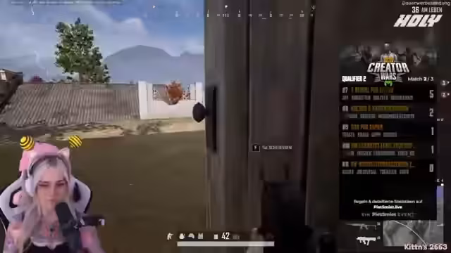 01:35:11Die Vorbereitung für ein geplantes PUBG-Turnier steht im Mittelpunkt des Streams. Die Streamerin diskutiert mit ihrem Team die technischen Details des Spiels, wie das Einrichten von privaten Lobbys und das Teilen von Server-Informationen. Dabei entstehen technische Herausforderungen, wie das Finden des richtigen Servers und das Einrichten des Overlays. Gemeinsam wird eine Strategie entwickelt, auf das Team zu vertrauen und in einem Schwarm zu agieren, um die Gegner zu 'bestäuben' und mit ihrem Stachel zu stechen.