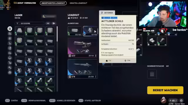 05:25:09Im Anschluss an ein verlorenes Gefecht wird das Inventar analysiert, um die fehlenden Teile für die Reparatur von Waffen und Schilden zu identifizieren. Es wird die Frage diskutiert, ob es sich lohnt, bestimmte Waffen, wie die Arpeggio, aufgrund ihrer einfacheren Reparatur gegenüber blauen Waffen zu bevorzugen. Der Streamer stellt auch fest, dass die aktuellen Inhalte aufwändig sind, aber für den Release erweitert werden werden.