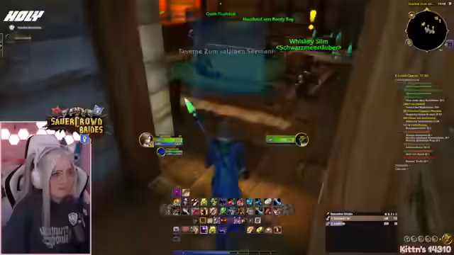 05:56:27Die Szene beschreibt die aktiven Level- und Loot-Aktivitäten in WoW, einschließlich des Sammelns von Gegenständen wie Piratenhüten und der Koordination innerhalb der Gruppe mit Spielern wie Nagura und John Smith. Diskussionen über Inventarmanagement, das Teilen von Items und das Aufteilen der Gruppe für effizientes Questing werden geführt. Es wird über spezifische Quests, Drop-Raten und strategische Entscheidungen gesprochen, wie das Umgehen von Schwierigkeiten durch Layering und das Nutzen von Vorteilen in bestimmten Gebieten wie Tanaris. Die Dynamik der Gruppenarbeit und das Lösen von In-Game-Problemen stehen im Fokus.