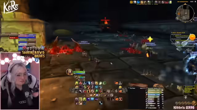 03:00:31Der Streamer gibt detaillierte Anweisungen für den Übergang in den nächsten Raum. Alle Spieler müssen kurz vor dem Tor stehen bleiben und nur vorsichtig in den Raum eintreten, um nicht ausgesperrt zu werden. Die Positionierung innerhalb des Raumes wird erörtert; es wird empfohlen, mittig oder in den Ecken zu bleiben, um nicht die Mobs vom Balkon zu pullen. Es gibt eine Diskussion über einen versehentlichen Pull durch einen Spieler und über die Verwendung von Leuchtfeuern für Hunter, um unsichtbare Mobs anzuzeigen und gezielte Pulls durchzuführen.