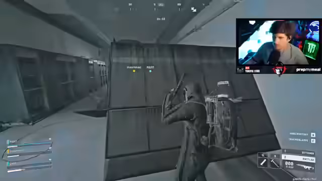 01:25:54Mit einem sogenannten Freeloadout-Peders startet der Streamer ins Spiel. Er stellt fest, dass sein Team sehr wenig Rüstung hat und sich über den eigenen mangelnden Schutz beschwert. Einige Male läuft er in gegnerische Feuerkraft hinein, was zu gefährlichen Situationen führt, und er reagiert überfordert auf die unmittelbar bevorstehenden Kämpfe.