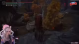 02:10:06Nach erheblichem Kampf und Geduld gelangt die Streamerin schließlich zum großen Baum, an dem sie die gesprungene Magie-Schleier-Träne farmen möchte. Bevor sie dies tut, aktiviert sie den Buff der Kriegsasche an ihrer Waffe, den Mondschleier. Sie erklärt, dass sie den Schwert-Skill aktivieren, anschließend aber wieder zum Mondschleier wechseln muss, um den Schadensbonus zu nutzen. Sie ist nun bereit, den Boss zu bekämpfen, nachdem sie die Übergänge gemeistert hat.