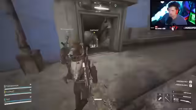 12:57:58In der Begrabenen Stadt kommt es zu einem heftigen Kampf mit einem gegnerischen Team. Der Streamer und seine Teammitglieder werden angegriffen, können sich aber durch geschicktes Taktieren und den Einsatz von Granaten in Sicherheit bringen. Sie eliminieren mehrere Gegner, unter anderem mit einem 'Stungranate'-Einsatz. Nachdem der Feind neutralisiert ist, looten sie die Gegner und finden wertvolle Gegenstände wie eine Farrow-4, blaue Schilder und einen taktischen Marker. Der Auszug unter Zeitdruck gelingt knapp.