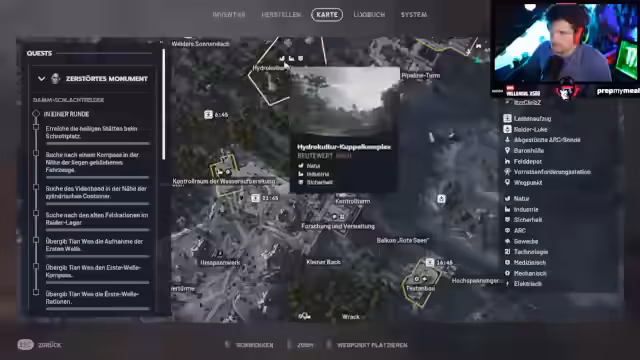13:42:31Nachdem der Kompass gefunden wurde, müssen die Spieler die Gegenstände nun abgeben. Es gibt Klärungsbedarf darüber, ob das物品 nur von einer Person abgegeben werden muss oder ob alle Mitspieler beteiligt sein müssen. Der Streamer schlägt vor, die Quest-Schritte pro Runde zu verteilen, um Zeit zu sparen. Es gibt auch Diskussionen über weitere Quest-Objekte, wie die "alten Feld-Restoren im Raiderlager". Der Streamer bemerkt, dass die Items, die man nicht selbst benötigt, möglicherweise von Teammitgliedern benötigt werden.