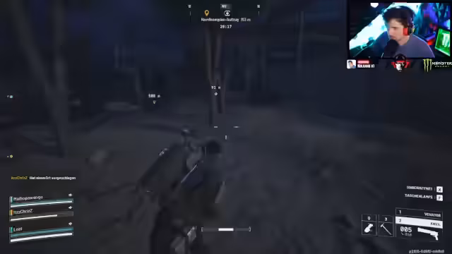 08:47:16Das Team gerät in ein heftiges Gefecht mit Gegnern und muss eine taktische Vorgehensweise wählen. Der Streamer verwendet Rauchgranaten, um Deckung zu schaffen, und kommuniziert aktiv mit seinen Teammitgliedern über die Positionen der Feinde. Er spürt an, dass sich ein Gegner hinter einem Gabelstapler versteckt und versucht, seine Teammitglieder zu schützen. Er schlägt vor, einen Gegner mit Rauchgranaten anzugreifen und sich dann zurückzuziehen.