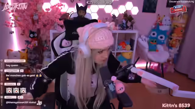 00:10:15Der Stream beginnt mit einem ungewöhnlichen Start, bei dem Streamerin zunächst fragt, was denn hier los ist und ob die Zuschauer gute Laune mitgebracht haben. Sie zeigt sich überrascht vom Engagement und bedankt sich für die vielen Re-Subs und Bits, die direkt nach dem Start eintrudeln. Die Stimmung ist von Beginn an geprägt von einer direkten und leicht chaotischen Art der Interaktion, bei der sie die Zuschauer immer wieder anspricht und auf die Beiträge eingeht.