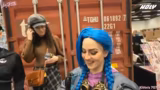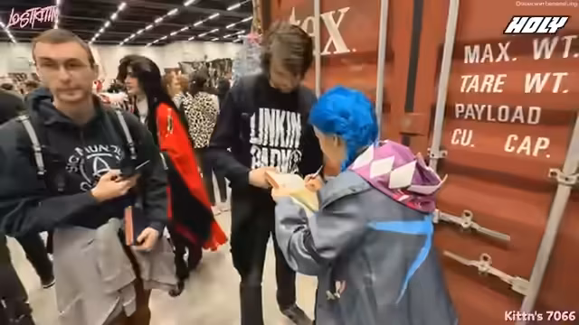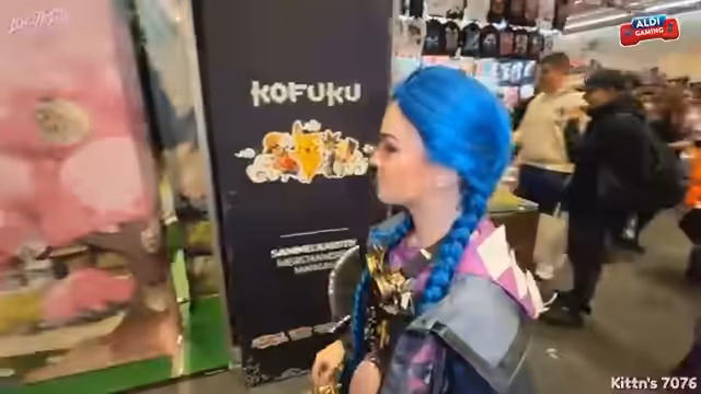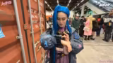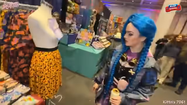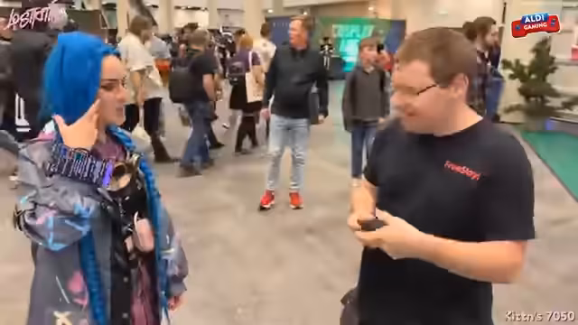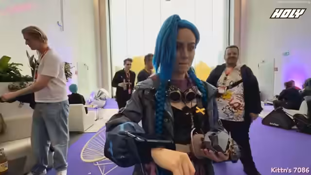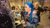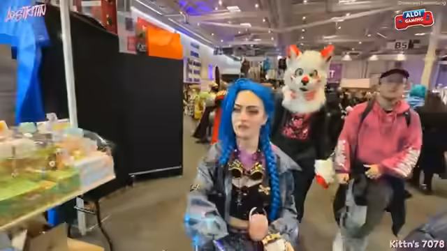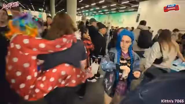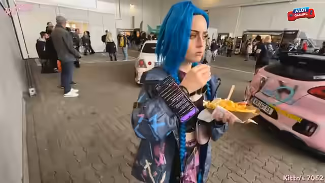 01:51:21Der Streamer trägt ein aufwändiges Jinx-Cosplay und wird von vielen Fans erkannt und angesprochen. Es gibt zahlreiche positive Rückmeldungen zum Aussehen des Cosplays, das drei Wochen Vorbereitungszeit benötigte. Er trifft bekannte Creator wie Kodiak, die als Maskottchen der Polsis Cosplay macht, und Fans wie Kenzie. Es kommt zu persönlichen Begegnungen, Fotoshootings und einem Austausch von Geschenken wie Stickern und Socken. Die Erfahrung wird als sehr positiv und das Treffen als persönlich beschrieben.