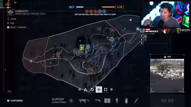 06:46:28Um eine spezifische Herausforderung zu meistern, die das Erreichen von Kills über 50 Metern erfordert, analysiert der Streamer potenzielle Maps. Er vergleicht Mirag Valley, Liberation Peak und Operation Firestorm und entscheidet sich für Mirag Valley, da es zwar offen ist, aber immer noch Close-Quarter-Kämpfe ermöglicht. Die Entscheidung für den Conquest-Modus fällt, um mehr Bewegungsfreiheit zu haben. Die Waffenwahl, insbesondere die B36 wegen ihres höheren Schadens, wird diskutiert, um die Herausforderung am effektivsten zu bestehen.