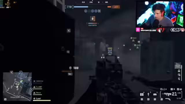 00:19:49Der Streamer startet in eine Runde auf der Map Konkurs mit der Klasse Engineer und der Maschinenpistole Vector. Er analysiert die Waffe im Detail und stellt fest, dass die Movement-Exploits und Strafen gefixt wurden. Das Gameplay fühlt sich für ihn aber nicht negativ an. Es werden Attachments wie Basic Extended und Penetrationsmunition verwendet. Ein technisches Problem mit der Waffeninteraktion wird bemerkt, das als besonders ärgerlich beschrieben wird. Die Performance und das Taktgefühl der Waffe werden positiv bewertet.