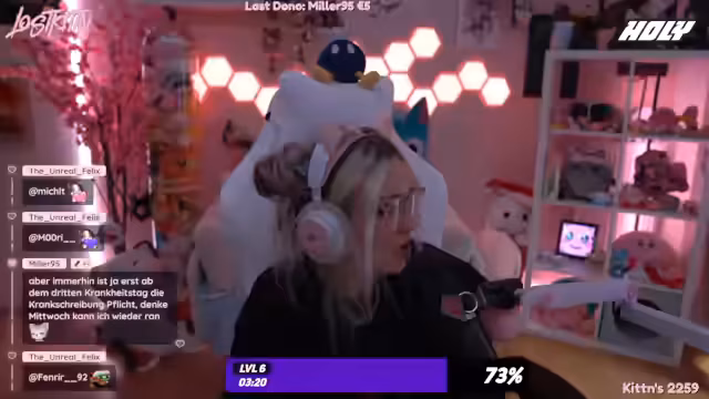 00:04:52Der Stream beginnt mit der Begrüßung der Community. Lilly teilt mit, dass sie mit dem Wetter heute extremes Pech hatte und zweimal im Regen und Hagel nach draußen musste, wobei sie dabei komplett durchnässt wurde. Sie erwähnt auch, dass sie tagsüber Termine hatte, u.a. beim Bürgerbüro und eine Gesichtsbehandlung, und dass sie sich nicht wohl fühlt, da ihr Gesicht ohne Make-up behandelt wurde. Der Support durch die Community wird mit großem Dank bedacht.