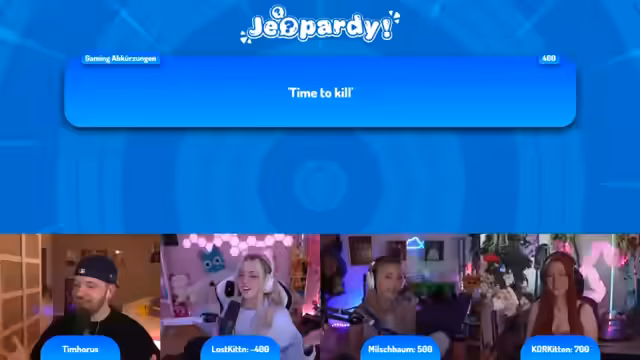 04:33:19Das Stream-Team spielt ein Quiz über Gaming-Abkürzungen. Zuerst geht es um die Bedeutung von TTK, was sich als 'Time to Kill' herausstellt – also die Zeit, die benötigt wird, um einen Gegner in einem Spiel zu eliminieren. Der Streamer erklärt, dass dieser Begriff hauptsächlich in Shootern wie Call of Duty verwendet wird und auch in anderen Spielen wie World of Warcraft vorkommt. Es wird diskutiert, wie verschiedene Waffen unterschiedliche Times to Kill haben können.