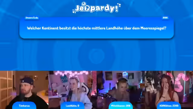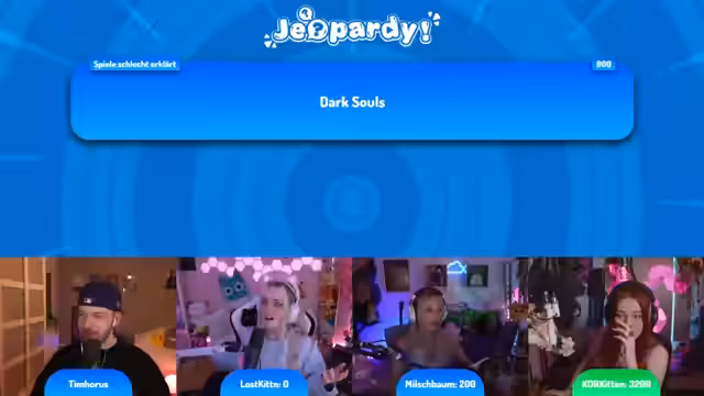 05:43:57Die Quizrunde umfasst Fragen zu Spielen und Physik. Eine Frage beschreibt 'Sklaven Simulator 1', was als 'Dark Souls' identifiziert wird. In der Physikkategorie wird gefragt, was ein Barometer misst, worauf die Antwort 'Luftdruck' korrekt ist. Die Teilnehmer diskutiere über die Fragen und einige Antworten führen zu lustigen Verwirrungen.