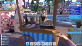 04:16:53Nach der Essensbestellung wechselt der Streamer zum Spiel Waterpark Simulator. Das Ziel des Spiels ist es, einen eigenen Wasserpark aufzubauen und zu verwalten, indem man Reparaturen durchführt, Gäste bedient und so Punkte sammelt. Die erste Runde verläuft chaotisch, da die ersten Gäste Probleme mit den Attraktionen haben und Müll hinterlassen.