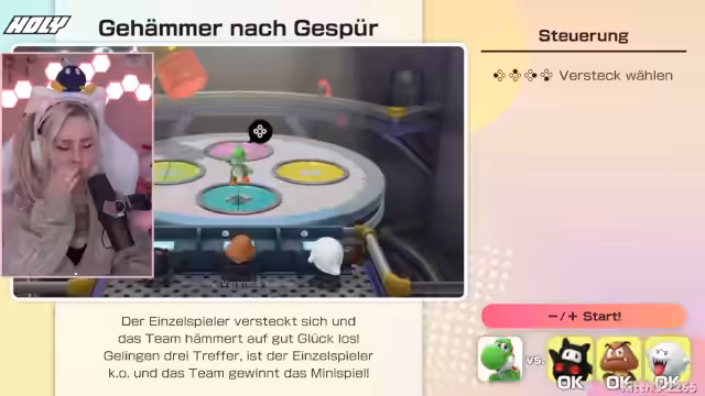02:59:14Das Spiel ist von hoher emotionaler Spannung geprägt. Eine Spielerin, Cardi, gewinnt einen Stern und zockt die anderen aus, was zu lautem Jubel und Schrecken führt. Die Streamerin beschreibt das als "Achterbahn der Gefühle". Auch ein Minispiel, in dem eine Person gegen drei andere antreten muss, wird als unfair empfunden, was zu Diskussionen über Spielbalancen und Formate wie "Eins gegen Zwei" führt.