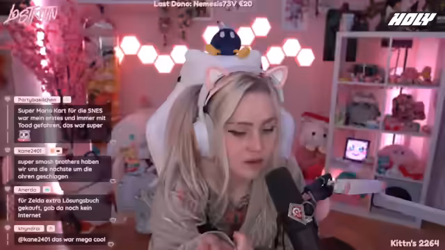 02:22:20Sie reflektiert ihre Gaming-Vergangenheit, die früher sehr einseitig war und hauptsächlich aus World of Warcraft, Counter-Strike und Nintendo-Spielen bestand. Ihre absolut Lieblingskonsole war der Nintendo Gamecube, auf dem sie besonders gerne Mario Kart Double Dash und Super Smash Bros. spielte.