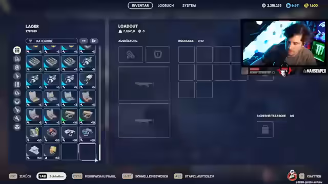 00:55:30Im Chat tauchen wiederholt Spenden oder Geschenke auf, die der Streamer dankend annimmt. Die Wertigkeit der angebotenen Gegenstände, wie Gummiteile für Schildcharger, wird diskutiert. Es wird betont, dass es wichtig ist, jeden Inventarslot mit dem maximal möglichen Wert zu füllen. Auch der Unterschied zwischen dem Stashwert und dem tatsächlichen Geldwert im Inventar ist ein wiederkehrendes Thema.