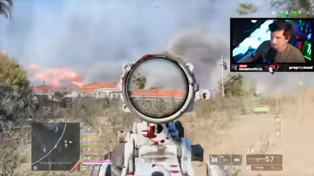 03:24:56Der Streamer, nun zu zweit, gerät in eine hektische Situation mit mehreren feindlichen Teams. Er hat kaum noch Heilung und muss sich gemeinsam mit seinem Kameraden verteidigen. Sie positionieren sich strategisch, versuchen, den Gegner in die Zunge zu locken und nutzen eine Flare, um Deckung zu finden. Der Kamerad wird bei dem Versuch, den Gegner anzugreifen, getötet und der Streamer bleibt allein zurück.