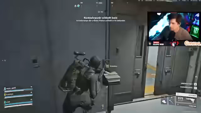 03:09:45Der Stream startet mit einem emotionalen Ausruf, als der Streamer versehentlich in eine falsche Tür gerät. Er wechselt zu einer Rattler 1 und beschreibt sein Setup, das einen epischen Schild, Zielunterstützung, eine Veneta 4, mehrere Medics und Abzugsgranaten umfasst. Er äußert den Bedarf an mehr Feuerkraft und betont, dass er seinen eigenen Verdienst im Spiel erarbeiten muss. Anschließend erwähnt er, dass ein weiteres Team in der Nähe ist und er vorsichtig sein muss.