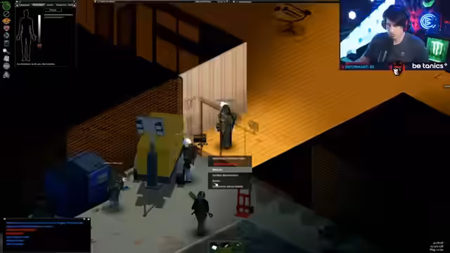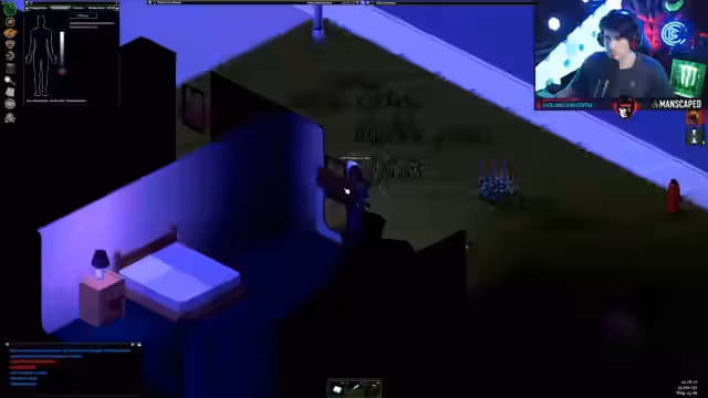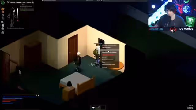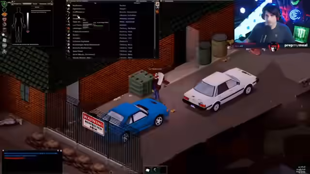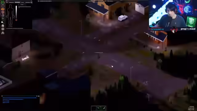 00:43:17Der Streamer wird zu einem Creator-Server in Project Zomboid eingeladen, der gerade startet. Nach technischen Vorbereitungen und der Installation diverser Mods startet er ins Spiel. Mit einem Charakter namens Lostradamus, der unter anderem untergewichtig und rauchend ist, landet er in der Stadt Muldraugh. Er muss sofort mit der Nahrungssuche beginnen und stellt fest, dass der Server mit 5% Sprinter- und 3% Smart-Zombies sehr herausfordernd ist.