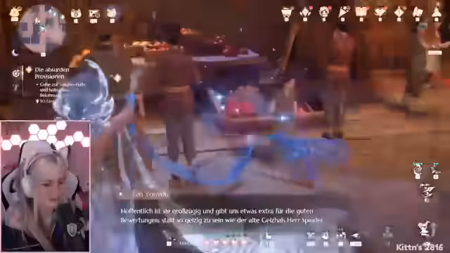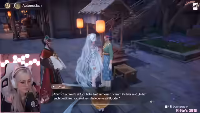 01:24:27Nach umfangreichen Outfit-Kreationen beginnt der Streamer mit der Hauptmission. Die Handlung führt ins Wongxiang-Reich, das unter einem Fluch leidet, der den Tag unendlich wiederholt. Alle Besucher erhalten eine Charaktermarke, die ihre Rolle im Reich definiert. Der Streamer interagiert mit verschiedenen Charakteren und versucht, dem Rätsel auf den Grund zu gehen, während auch sein Begleiter Momo im Rampenlicht steht und ebenfalls verschiedene Outfits zeigt, was den spielerischen Charakter des Streams unterstreicht.