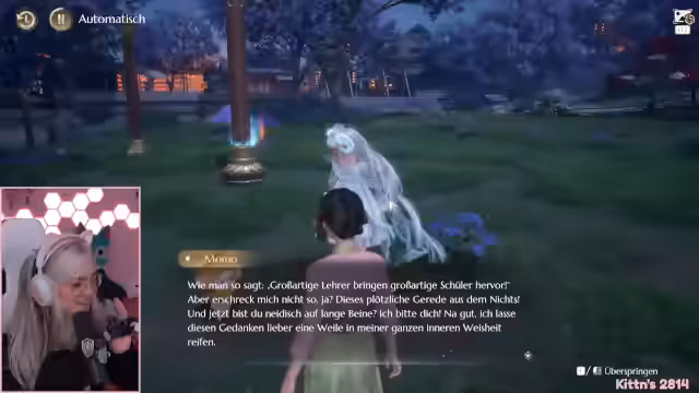 03:55:04Die Prüfung wird erfolgreich bestanden, indem Niki ihre Gestalt an die Erfordernisse anpasst, um würdevoll und nicht arrogant zu wirken. Die Streamerin lobt die Story des Abschnitts, die düster und geheimnisvoll ist. Sie bewirbt das Spiel 'Fiatie Niki' als Open-World-Spiel mit vielen Rätseln, sammelbaren Outfits und Quests, und kündigt den Stream für den nächsten Tag an.