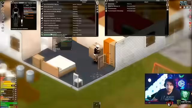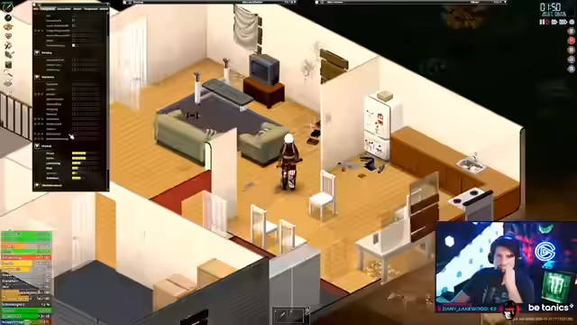 02:44:59Nach dem gescheiterten Versuch, die Feuerwache zu plündern, zieht sich der Streamer zurück, um den Charakter zu sichern und zu pflegen. Er wechselt verletzte Bandagen, regeneriert sich und zieht sich in ein Haus zurück, um zu schlafen. Er plant, die gesammelten Ressourcen sicher ins Haus zu transportieren und überlegt, welche Fähigkeiten er als nächstes entwickeln soll, wie z.B. Jäger oder Athletik.