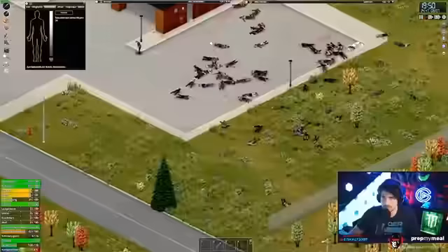 05:03:15Der Streamer plant, den aktuellen gefährlichen Standort zu verlassen, da er mit schwerem Gepäck und hungernd ist. Er muss sich durch eine Zombie-Horde hindurchkämpfen und entscheidet sich, sein Fahrzeug zu nutzen, um sich einen Weg zu bahnen. Bei der Flucht stößt er auf weitere Hindernisse, wie einen Polizeiwagen und einen großen Schrottplatz, der von vielen Zombies belagert ist. Er versucht, sich unauffällig zu bewegen, wird aber von den Zombies entdeckt und gerät in eine äußerst gefährliche Situation, aus der er nur mit knapper Not entkommen kann.