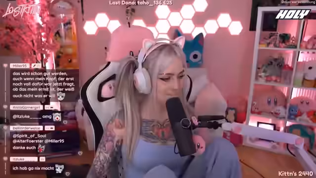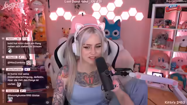 00:06:35Der Stream beginnt mit einem privaten Chat und einem kleinen technischen Problem bei der Einrichtung des Mikrofons. Die Streamerin begrüßt die Zuschauer mit der Frage "Was geht?" und erwähnt eine geplante Anime-Frisur, die sie versucht hat. Sie bedankt sich bei zwei langjährigen Supportern, Skur Spectre und Black Dragon, für ihre Treue und teilt mit, dass es ihr gut geht. Ein kurzer Tippfehler bezüglich des Datums wird korrigiert und der Stream wird mit "Let the fetish beginn!" fortgesetzt.