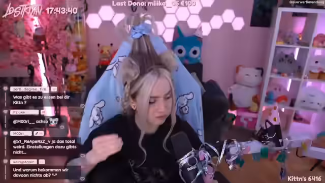00:15:37Nach einer kurzen Morgenbegrüßung des Chats wechselt der Fokus auf Katzen-Content. Die Streamerin kommentiert das Verhalten ihrer Katzen Bubbles und Happy und deren Vorlieben für Kartons und Waschbecken. Es wird über die unterschiedlichen Farben der Katzen im Sonnenlicht gesprochen und ein Bild vom Vortag erwähnt, das dies verdeutlicht. Der Chat beteiligt sich aktiv mit Kommentaren und Anekdoten über ihre eigenen Katzen. Es folgt eine kurze Diskussion über die Sabberneigung von Happy und die damit verbundenen Unannehmlichkeiten. Die Streamerin kündigt an, dass im Hintergrund noch Katzensachen fertig gebaut werden müssen. Der Chat wird aufgefordert, Vorschläge für eine lustige Frisur einzureichen, die die Streamerin im Laufe des Streams tragen soll. Die Vorschläge sollen in einem Discord-Fotoalbum gesammelt werden, wobei die endgültige Entscheidung bei der Streamerin liegt. Es werden bereits einige verrückte Vorschläge diskutiert, darunter ein Irokesenschnitt und diverse Tierfrisuren.