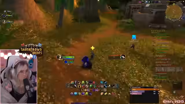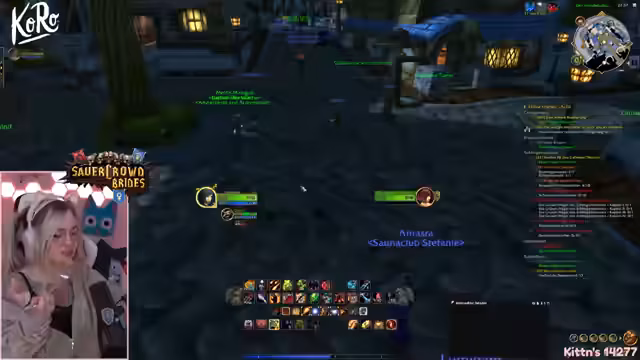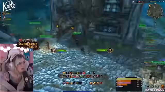 02:09:37Die Gruppe erreicht Booty Bay, eine als "One-Piece-Vibes" beschriebene verwinkelte Stadt. Es wird nach Quests gesucht, die man annehmen kann, wobei einige aufgrund von Level-Grenzen nicht verfügbar sind. Streamerin versucht, ihre volle Questlog-Kapazität zu nutzen. Die Anwesenheit von feindlichen Spielern in der Stadt wird als unangenehm empfunden. Währenddessen werden Probleme mit der Gruppen- und Discord-Kommunikation gelöst, indem man sich aufteilt.