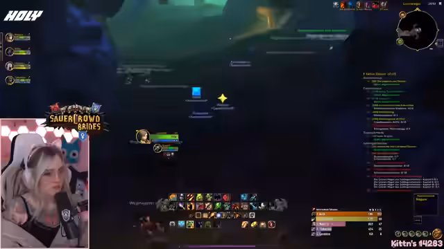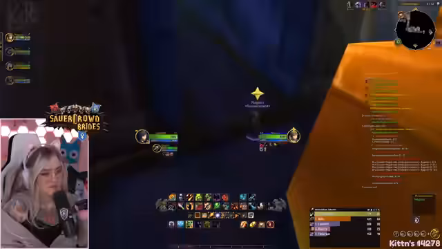 01:38:22Innerhalb der Höhle kommt es zu einem kritischen Moment, als versehentlich zu viele Monster auf einmal angezogen werden. Streamerin reagiert panisch und nutzt einen Leerenbänder, um die Situation zu überleben, was als Zeichen ihres Angsthase-Seins beschrieben wird. Trotzdem schlägt sie vor, die Quest alleine als Heiler zu meistern. Es werden Schwierigkeiten bei der Gruppenkommunikation und der Monster-Interaktion diskutiert, insbesondere das Verständnis von Social Aggro und Leash-System.