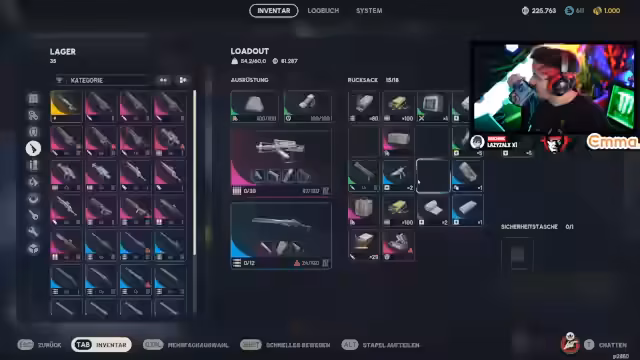 05:48:47Die Spieler befinden sich in einem intensiven Kampf, bei dem sie von Gegnern abgefischt werden und sich in einem Katz-und-Maus-Spiel wiederfinden. Trotz der Schwierigkeiten gelingt es ihnen, die Queen zu besiegen und zwei gegnerische Teams auszuschalten, während sie selbst überleben. Nach dem erfolgreichen Kampf steht die Inventarverwaltung im Vordergrund. Es wird festgestellt, dass zu viele unnötige Gegenstände wie 'Bettinas' das Inventar verstopfen. Die Spieler versuchen, Platz zu schaffen, indem sie überflüssige Gegenstände verkaufen oder recyceln, wobei sie feststellen, dass selbst nach dem Entfernen von Waffen das Inventar kaum leerer wird. Die Suche nach einem Smoke-Rezept wird als dringend notwendig erachtet, da die Vorräte knapp werden. Die Diskussion über die Solo-Freundlichkeit des Spiels zeigt, dass es im PvE-Modus viele freundliche Begegnungen gibt, dies sich jedoch ändern könnte, wenn Spieler die PvP-Aspekte des Extraction-Shooters stärker nutzen.