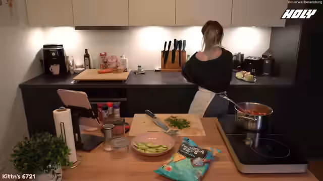 01:54:41Während das Chili köchelt, bereitet der Streamer die Beilagen zu. Er schält, entkernen und schneidet eine Avocado und hackt frischen Koriander. Dabei teilt er seine Erfahrungen mit Avocados, betont die Wichtigkeit des Reifegrads und gibt einen wichtigen Tipp für Katzenbesitzer, um eine Strangulationsgefahr durch Plastiktüten zu vermeiden.