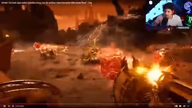 00:49:46Aus der Perspektive eines Spielers beschreibt der Streamer das Gameplay. Er hebt den neuen Kreissägenschild als zentrales Element hervor, der das Kampfsystem im Vergleich zu 'Doom Eternal' verändert und den Slayer zu einem 'unaufhaltsamen Panzer' werden lässt. Während er die brutale Gewalt und die Power der Waffen wie der Schrotflinte und des 'Skullcrushers' lobt, kritisiert er die Story-Bosse als unspannend und das Level-Design als gezwungen, um Spielzeit zu erzeugen. Er argumentiert, das Spiel sei technisch solide, erreiche aber nicht die technische oder spielerische Höhe von 'Doom Eternal'.