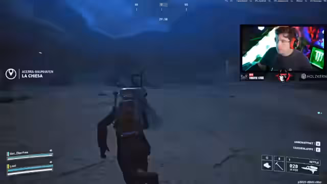 02:32:25Der Spieler äußert Frustration über die Spielmechaniken, insbesondere die Schwierigkeit, sich an bestimmten Stellen festzuhalten, was als 'ein Zentimeter' Problem beschrieben wird. Ein Gegner wird gesichtet, der einfach in den Bereich marschiert ist, was zu einem schnellen Kampf führt, bei dem mehrere Gegner 'genockt' werden. Die Gegner werden als 'below loadout' beschrieben, was die Situation noch verwirrender macht. Es wird über die Position eines 'Hullcrackers' diskutiert, während weitere Gegner auf dem Dach gesichtet werden.