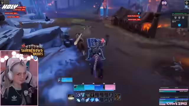 04:57:07Die Gruppe navigiert durch Dungeon-ähnliche Umgebungen mit komplexen Mechaniken. Verschiedene Bosse wechselnde Fähigkeiten erfordern von den Spielern ständige Anpassung: Bei Feuer-Auren muss man stillstehen, bei Frost-Auren muss man sich bewegen. Ein gefährlicher Affix namens 'Uga Bugga' muss unterbrochen werden, um den Schaden zu minimieren. Die Kommunikation ist entscheidend, um Gruppenmitglieder zu heilen und die Overlords der Aura zu vermeiden.