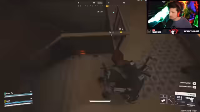 01:53:14Das Gameplay konzentriert sich auf das Erkunden von Gebäuden und die Jagd auf Gegner. Der Streamer bewegt sich durch verschiedene Etagen und Positionen, wobei er auf Geräusche und Bewegungen achtet. Es kommt zu mehreren Feuergefechten, bei denen Gegner gedropped und lootet werden. Dabei werden verschiedene Waffen wie die Venator und der Stitcher genutzt und ihre Wirkung sowie Munition verfolgt.