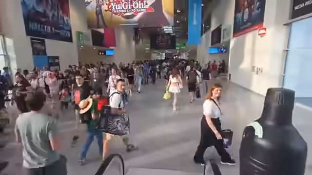 02:13:54Die Messehallen sind für einen späten Sonntagabend außergewöhnlich voll und belebt. Es stellt sich heraus, dass die Hallen bereits um 19 Uhr schließen sollen, was für Überraschung sorgt. Trotzdem ist noch viel los, was eine intensive und dynamische Gamescom-Atmosphäre erzeugt. Besondere Aufmerksamkeit gilt den großen Ständen, wie dem von Netflix, der als 'atmosphärisch' und 'krass' beschrieben wird.
