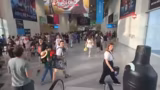 02:21:55Die Messebesucher loben die Outfits der Streamer. Trotz des späten Zeitpunkts wird die beeindruckende und jährlich wechselnde Gestaltung der Stände hervorgehoben, wobei insbesondere der Netflix-Stand und der große SK-Gaming-Stand erwähnt werden. Es gibt einen spontanen, interaktiven Moment, bei dem versucht wird, Passanten für eine Challenge zu befragen, was auf gemischte Resonanz stößt.