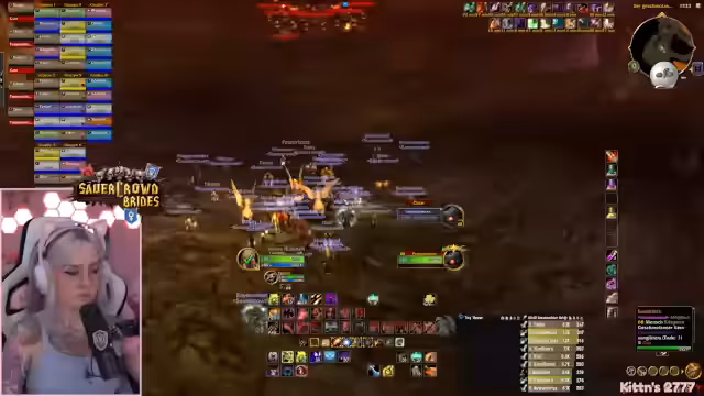 06:21:13Der Kampf gegen Moltencore beginnt und verläuft erfolgreich. Die Streamerin gibt präzise Anweisungen für die Positionierung und die Fähigkeiten der einzelnen Teammitglieder, insbesondere für Meleys. Es kommt zu einer hektischen Phase, in der der Boss einen Abfeuer-Mechanismus startet, der jedoch gemeistert wird. Nach dem finalen Reset bei 10% Lebenspunkten gelingt es der Gruppe, den Boss ohne einen einzigen Tod zu besiegen, was als großer Erfolg und außergewöhnliche Leistung gefeiert wird.