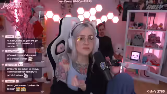 06:55:44Nach der offiziellen Dankesphase folgt eine lockere und ausgelassene Nachfeier. Die Streamerin stellt eine Playlist mit Musikstücken zusammen, um die Stimmung hochzuhalten. Es werden Lieder wie ASPs 'Ich will brennen' und Electric Callboys 'Tanz Night' gespielt, die zu einer gemeinsamen Feierstimmung im Chat und im Stream führen. Der Fokus liegt darauf, den triumphalen Moment gemeinsam auszukosten und sich zu entspannen.
