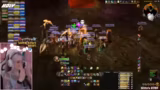 04:08:20Der Raid konzentriert sich auf den Boss Gehennas, dessen Kampf um seine 'Tröte' (Flammenblitz) kreist. Eine zufällige Person erhält eine 'Living Bomb' und muss sofort an die Seite des Raids rennen, um die Gruppe nicht in die Explosion mitzuziehen. Es werden klare Anweisungen für die Tank-Position, den Heilungsbedarf und die Ausweichbewegungen gegeben. Der Streamer warnt davor, nicht gierig zu sein und den Calls zu folgen, um in den gefährlichen Wellen zu überleben.