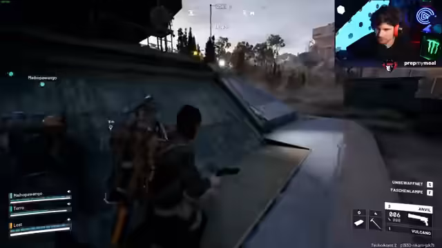 12:12:17Nachdem das Team mehrere Gegner neutralisiert hat, stoßen sie auf den großen Ernter-Boss. Der Streamer ist von dessen Erscheinung beeindruckt und beschreibt die aufregende Konfrontation. Der Boss feuert Raketen und Granaten, was zu chaotischen Szenen führt. Das Team kämpft ums Überleben und nutzt verschiedene Taktiken, wie das Nutzen von Ziplines. Nachdem der Ernter besiegt ist, looten sie wertvolle Gegenstände und tauschen Ausrüstung untereinander aus. Der Streamer bewertet die Erfahrung als absolut "geil" und "crazy".