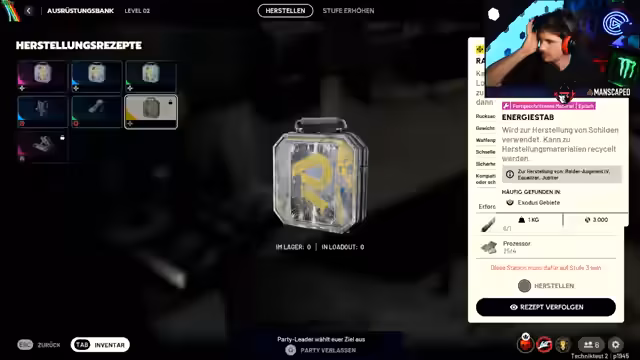 03:16:10Zu Beginn des Streams befasst sich der Streamer intensiv mit der Suche nach Rezepten und Komponenten für Waffen, insbesondere für solche mit mittlerer Munition. Er erkundet verschiedene Veredler und stellt fest, dass bestimmte Rezepte wie das für erweiterte Magazine für Schrotflinten bereits gefunden wurden, während andere für mittlere Munition noch fehlen. Dies führt zu einer Diskussion über die verschiedenen Items wie ARC-Bewegungskerne, Mod-Komponenten und elektrische Komponenten, die für Upgrades benötigt werden.